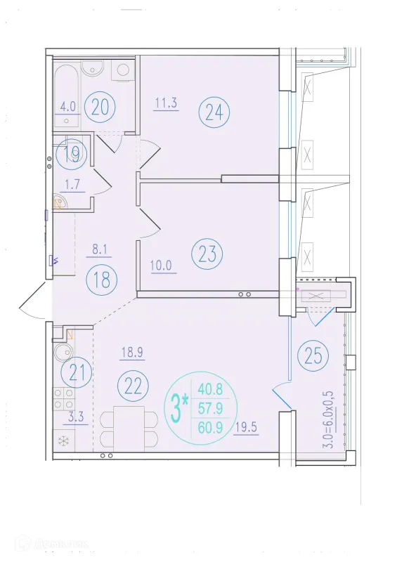 3 комн. квартира в Ростове-на-Дону в ипотеку от 95 773 руб/месяц