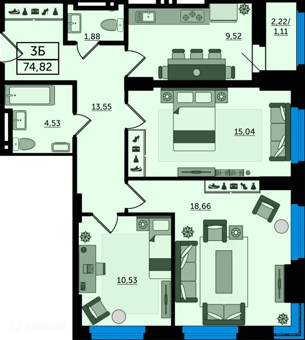 3 комн. квартира в Ростове-на-Дону в ипотеку от 58 547 руб/месяц