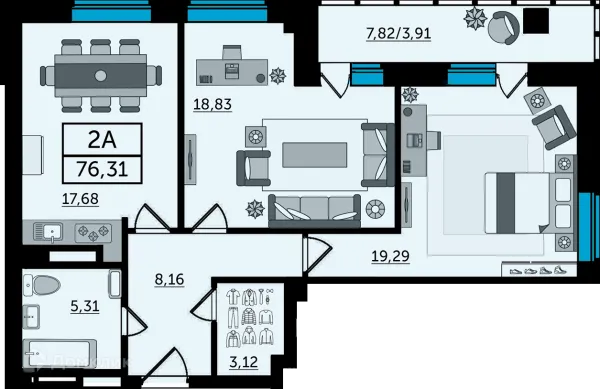 2 комн. квартира в Ростове-на-Дону в ипотеку от 78 001 руб/месяц