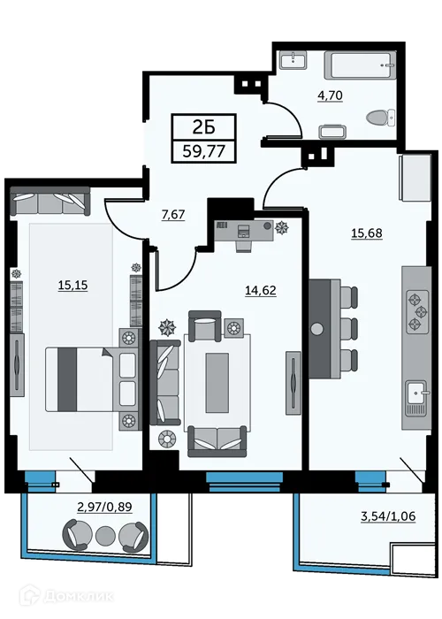 2 комн. квартира в Ростове-на-Дону в ипотеку от 61 147 руб/месяц