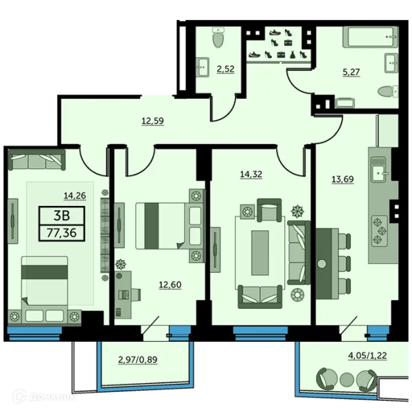 3 комн. квартира в Ростове-на-Дону в ипотеку от 66 623 руб/месяц