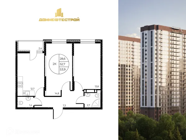 2 комн. квартира в Ростове-на-Дону в ипотеку от 54 028 руб/месяц