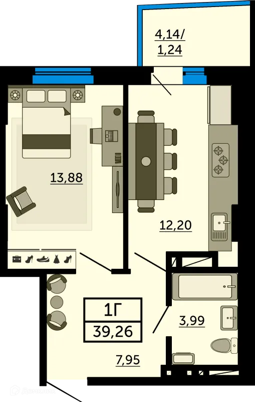 1 комн. квартира в Ростове-на-Дону в ипотеку от 44 835 руб/месяц