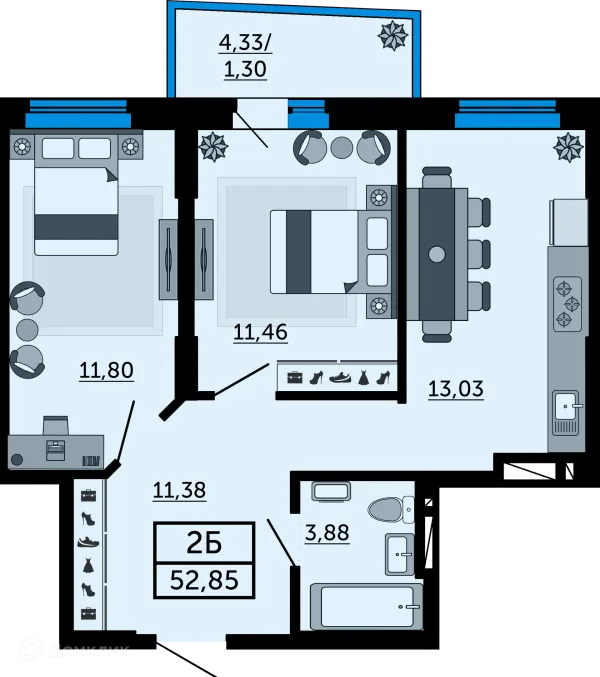 2 комн. квартира в Ростове-на-Дону в ипотеку от 45 452 руб/месяц