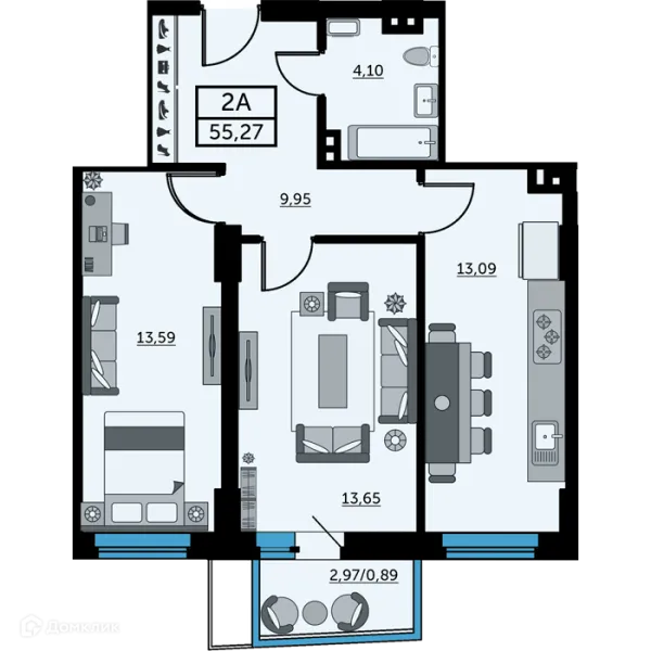 2 комн. квартира в Ростове-на-Дону в ипотеку от 58 158 руб/месяц