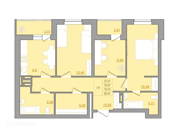 3 комн. квартира в Ростове-на-Дону в ипотеку от 82 949 руб/месяц