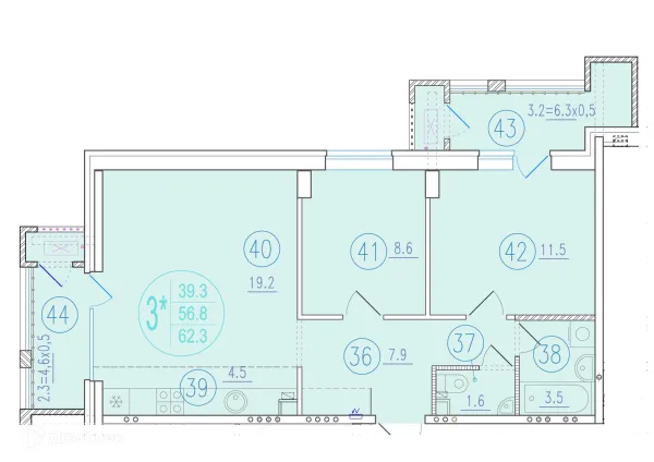 3 комн. квартира в Ростове-на-Дону в ипотеку от 57 063 руб/месяц