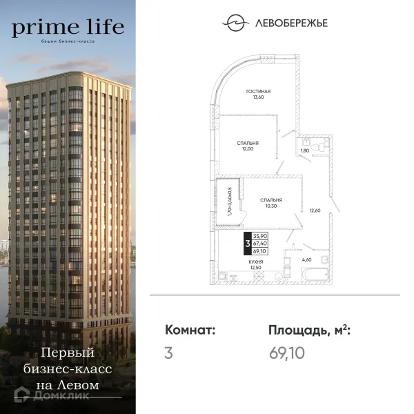 3 комн. квартира в Ростове-на-Дону в ипотеку от 103 136 руб/месяц
