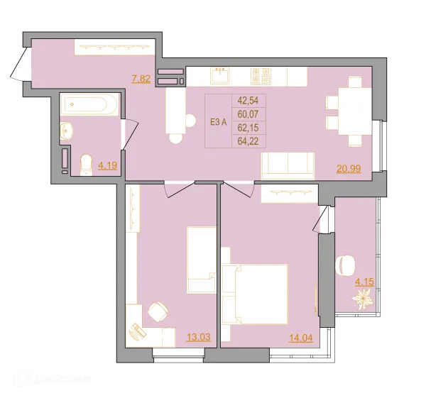 3 комн. квартира в Ростове-на-Дону в ипотеку от 60 844 руб/месяц
