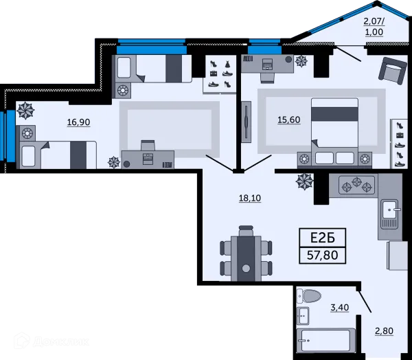 2 комн. квартира в Ростове-на-Дону в ипотеку от 67 608 руб/месяц