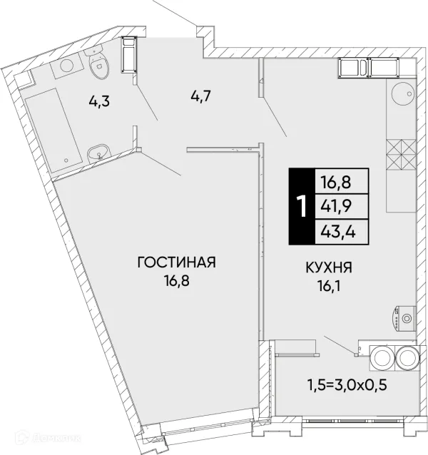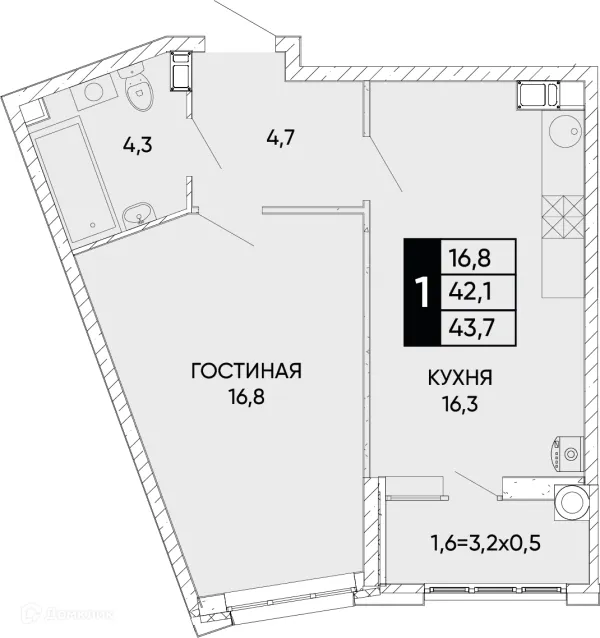 1 комн. квартира в Ростове-на-Дону в ипотеку от 41 341 руб/месяц