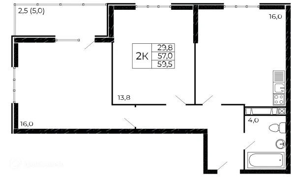 2 комн. квартира в Ростове-на-Дону в ипотеку от 61 021 руб/месяц