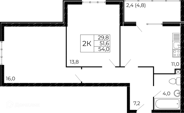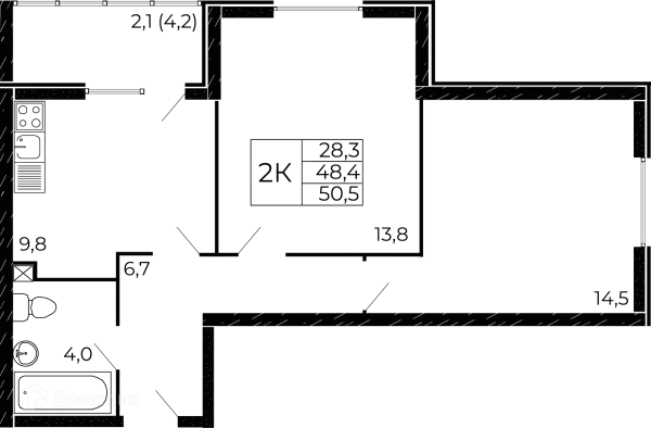 2 комн. квартира в Ростове-на-Дону в ипотеку от 48 702 руб/месяц