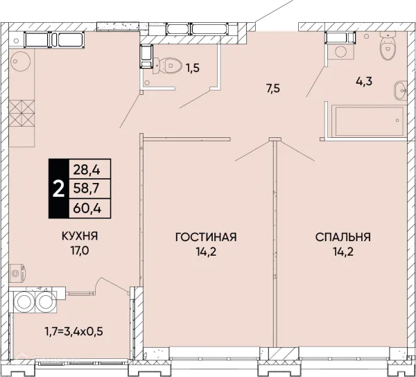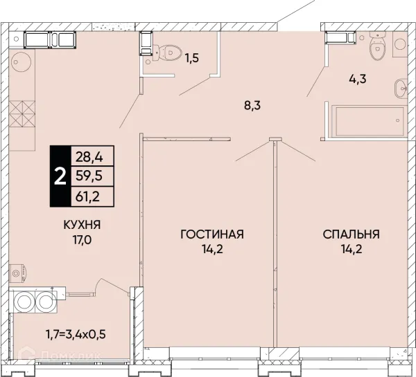 2 комн. квартира в Ростове-на-Дону в ипотеку от 58 434 руб/месяц