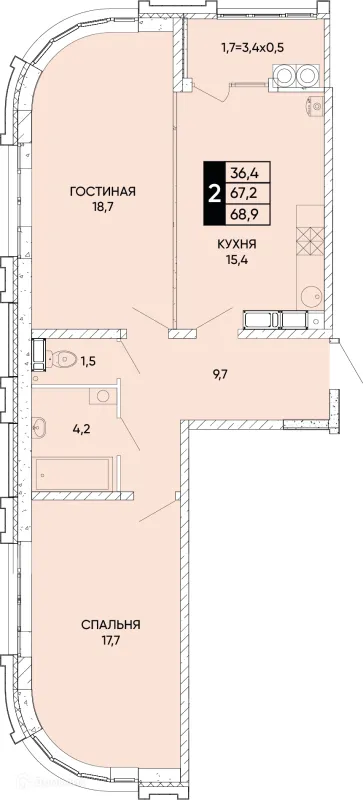 2 комн. квартира в Ростове-на-Дону в ипотеку от 68 529 руб/месяц