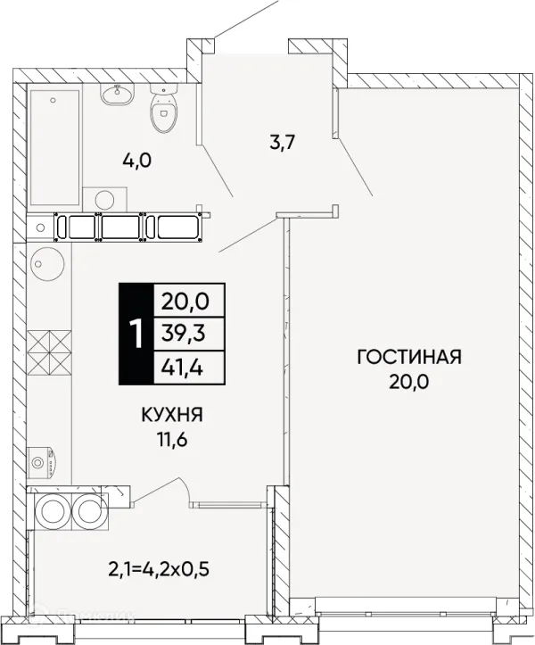 1 комн. квартира в Ростове-на-Дону в ипотеку от 41 391 руб/месяц