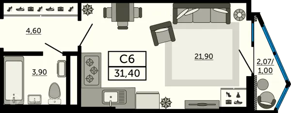 Студия квартира в Ростове-на-Дону в ипотеку от 32 414 руб/месяц