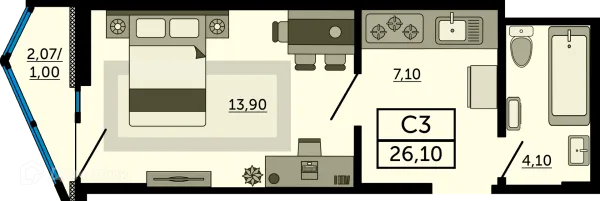 Студия квартира в Ростове-на-Дону в ипотеку от 25 999 руб/месяц