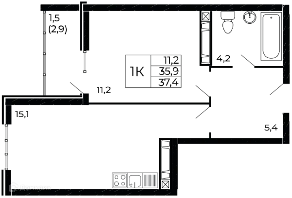 1 комн. квартира в Ростове-на-Дону в ипотеку от 37 980 руб/месяц