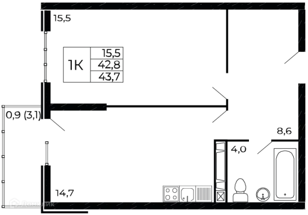 1 комн. квартира в Ростове-на-Дону в ипотеку от 41 866 руб/месяц