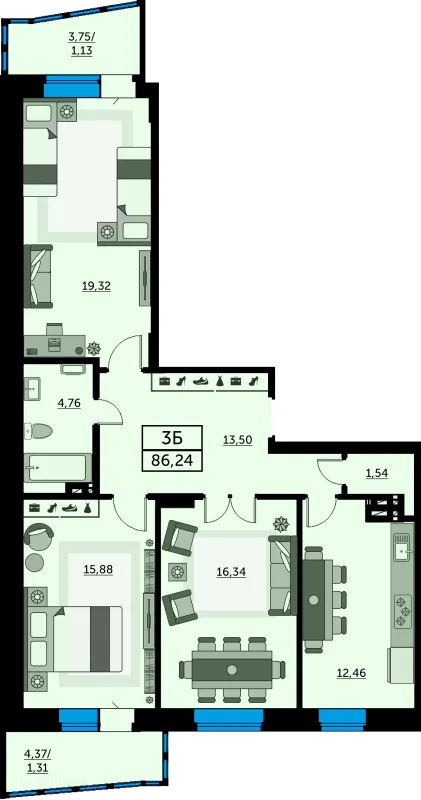 3 комн. квартира в Ростове-на-Дону в ипотеку от 76 357 руб/месяц