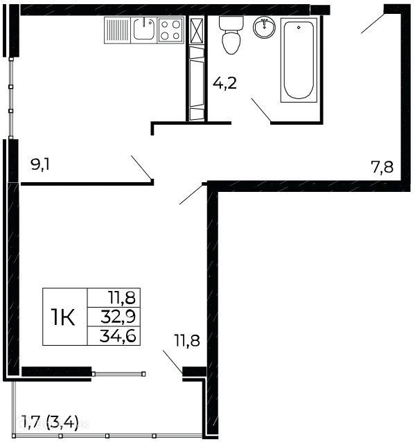 1 комн. квартира в Ростове-на-Дону в ипотеку от 34 100 руб/месяц