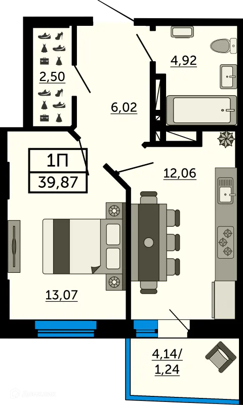 1 комн. квартира в Ростове-на-Дону в ипотеку от 39 317 руб/месяц