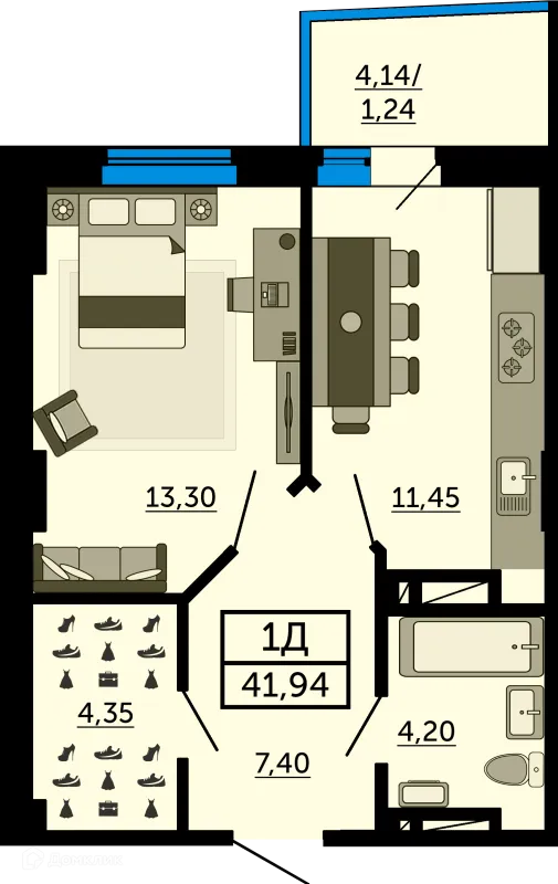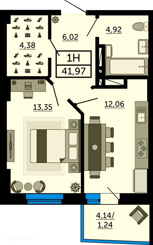1 комн. квартира в Ростове-на-Дону в ипотеку от 43 976 руб/месяц