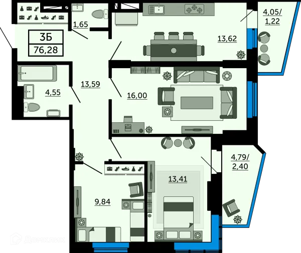 3 комн. квартира в Ростове-на-Дону в ипотеку от 60 517 руб/месяц