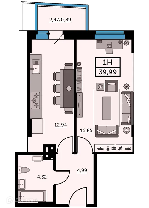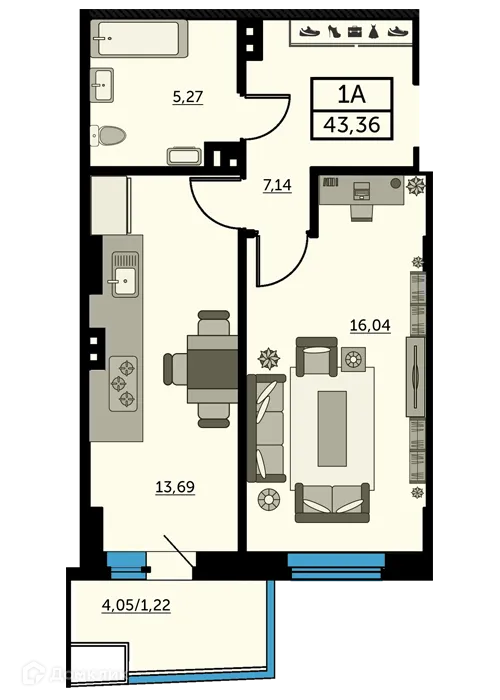 1 комн. квартира в Ростове-на-Дону в ипотеку от 40 628 руб/месяц