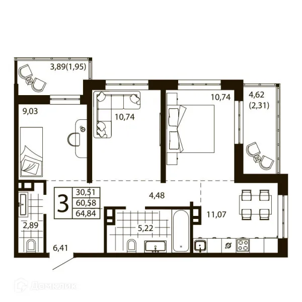 3 комн. квартира в Ростове-на-Дону в ипотеку от 65 287 руб/месяц