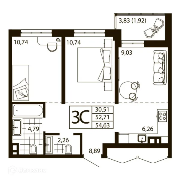 3 комн. квартира в Ростове-на-Дону в ипотеку от 54 550 руб/месяц