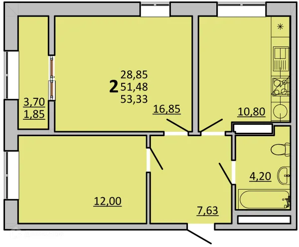 2 комн. квартира в Ростове-на-Дону в ипотеку от 77 073 руб/месяц