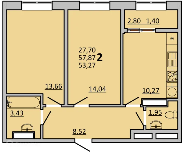 2 комн. квартира в Ростове-на-Дону в ипотеку от 95 413 руб/месяц