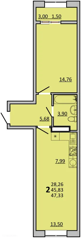 1 комн. квартира в Ростове-на-Дону в ипотеку от 60 150 руб/месяц