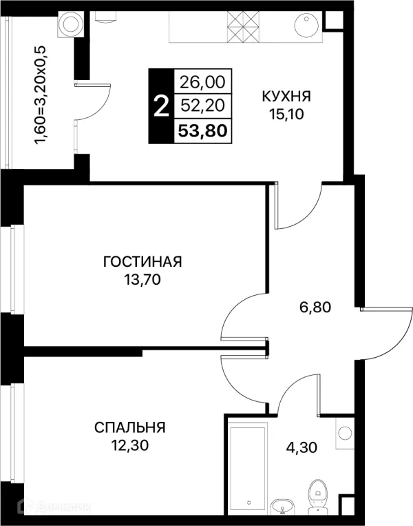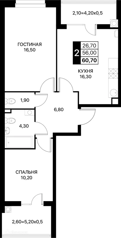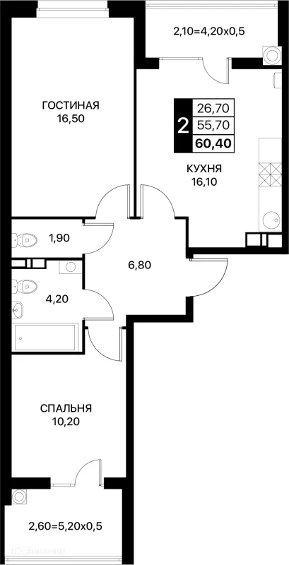2 комн. квартира в Ростове-на-Дону в ипотеку от 57 782 руб/месяц