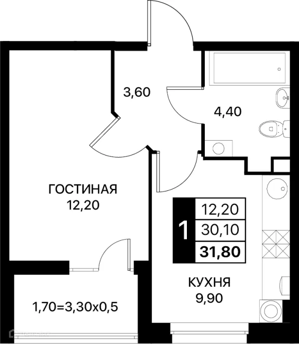 1 комн. квартира в Ростове-на-Дону в ипотеку от 38 299 руб/месяц
