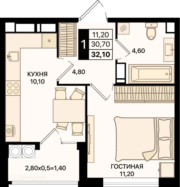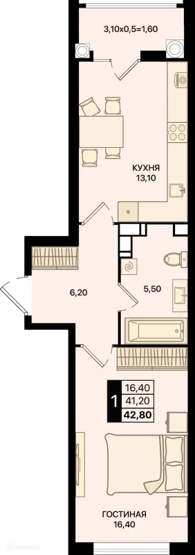 1 комн. квартира в Ростове-на-Дону в ипотеку от 43 212 руб/месяц