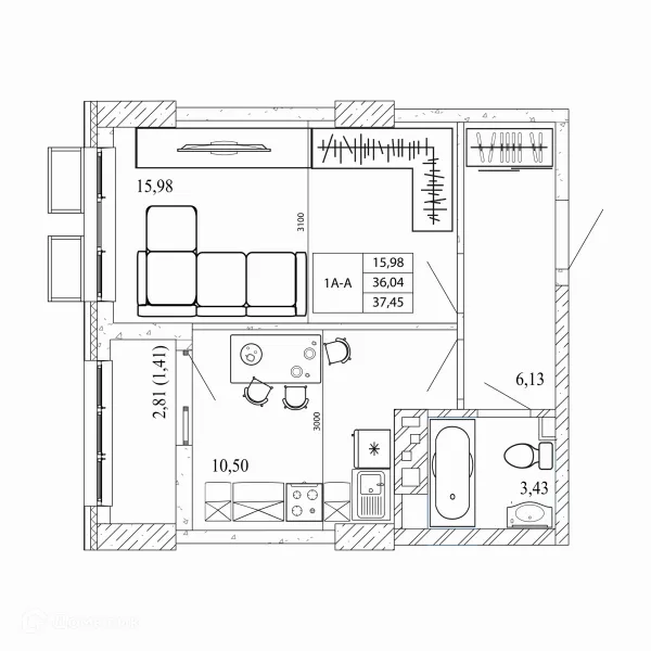 1 комн. квартира в Ростове-на-Дону в ипотеку от 41 024 руб/месяц