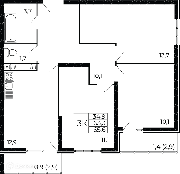 3 комн. квартира в Ростове-на-Дону в ипотеку от 56 261 руб/месяц