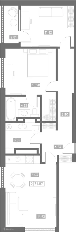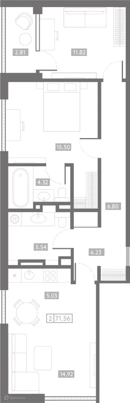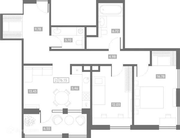 2 комн. квартира в Ростове-на-Дону в ипотеку от 151 797 руб/месяц