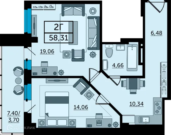 2 комн. квартира в Ростове-на-Дону в ипотеку от 123 714 руб/месяц