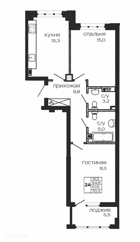 2 комн. квартира в Ростове-на-Дону в ипотеку от 77 655 руб/месяц