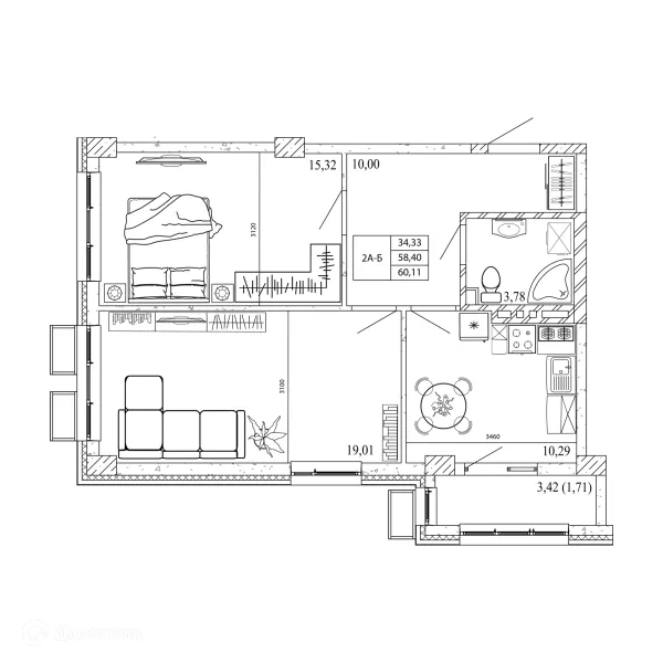 2 комн. квартира в Ростове-на-Дону в ипотеку от 61 465 руб/месяц