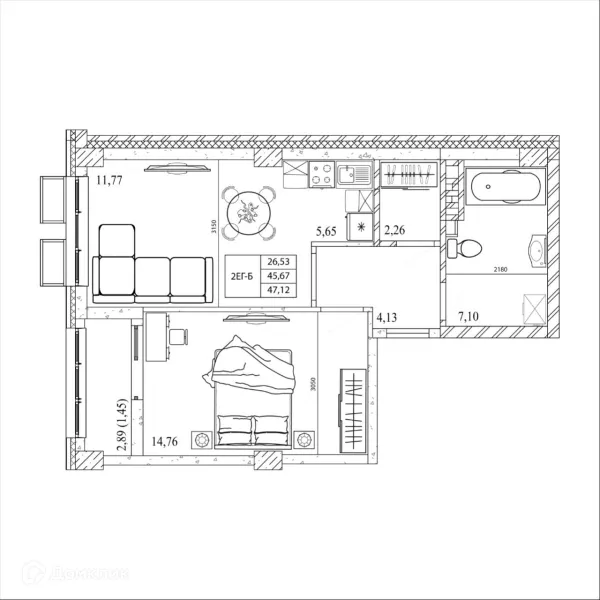 2 комн. квартира в Ростове-на-Дону в ипотеку от 47 142 руб/месяц