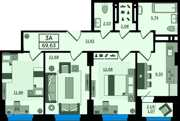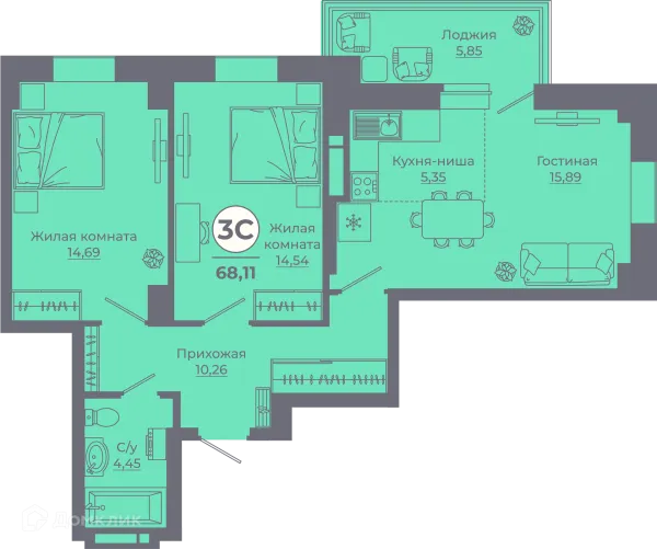 3 комн. квартира в Ростове-на-Дону в ипотеку от 67 401 руб/месяц