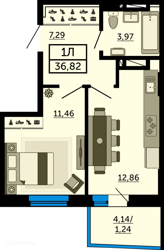 1 комн. квартира в Ростове-на-Дону в ипотеку от 37 200 руб/месяц
