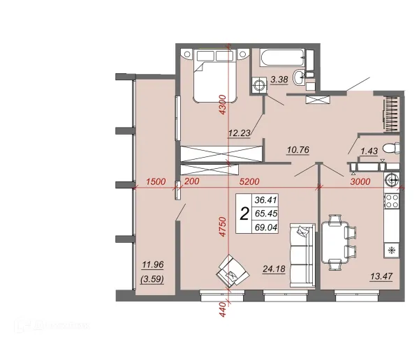 2 комн. квартира в Ростове-на-Дону в ипотеку от 87 869 руб/месяц