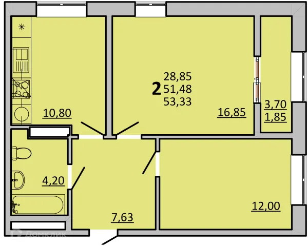 2 комн. квартира в Ростове-на-Дону в ипотеку от 87 633 руб/месяц