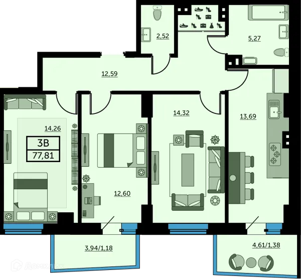 3 комн. квартира в Ростове-на-Дону в ипотеку от 69 471 руб/месяц